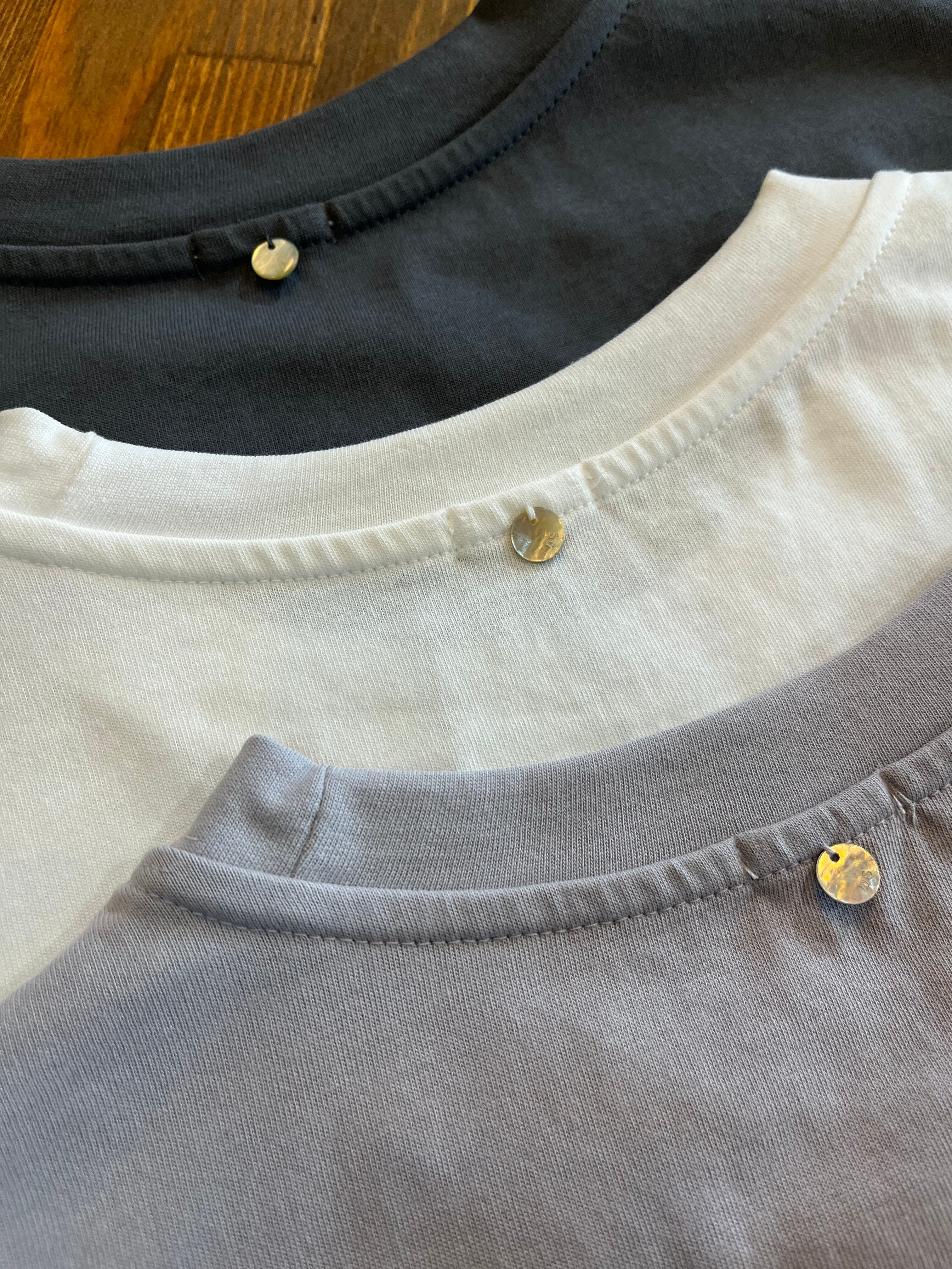 [商品詳細]程よくコシがあり、キメ細やかでなめらかな肌触りのコットン天竺生地を使用し、着丈、袖丈で上手くバランスを取ることで綺麗なシルエットを生んだ1枚です。